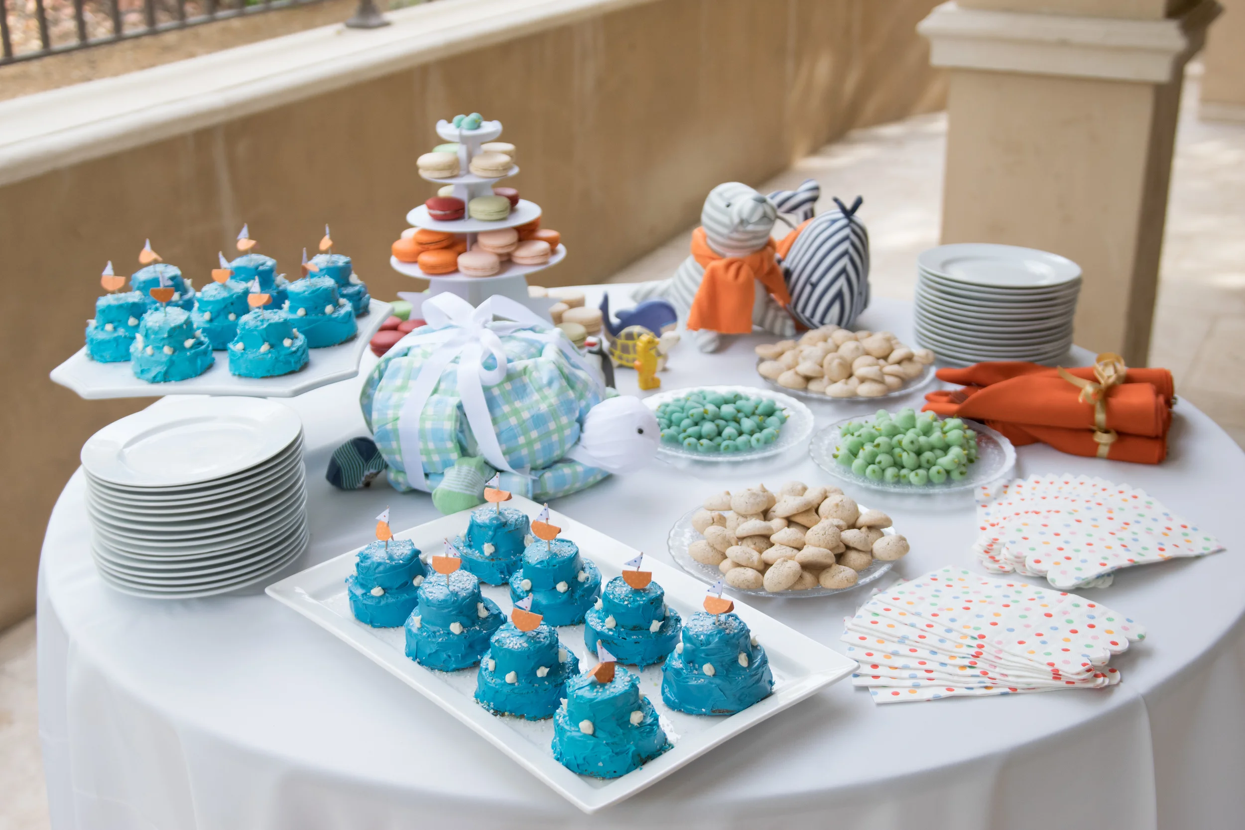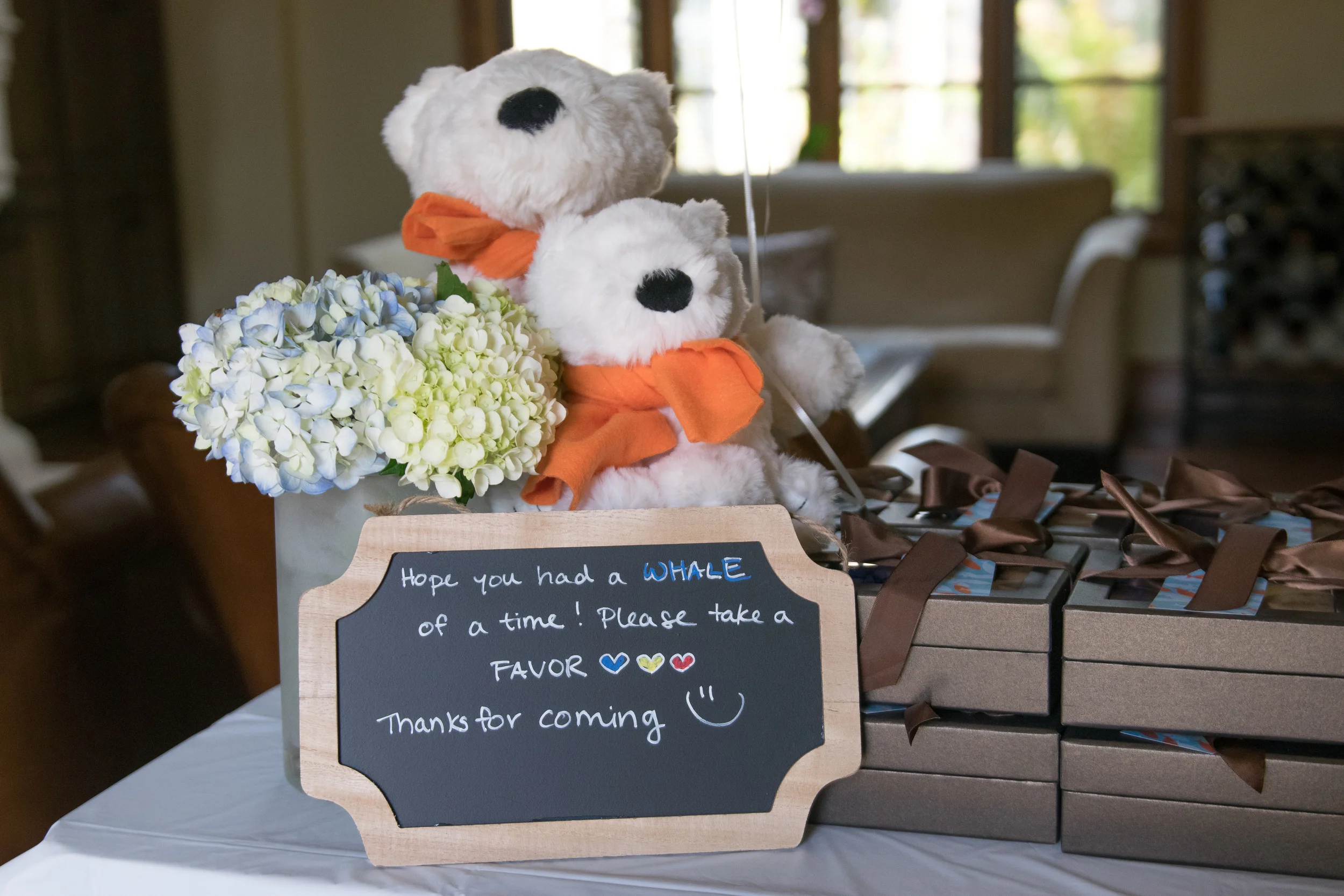 Look at that beautiful glowing Mama-to-be!! Baby Showers are so much fun to host! Especially when it's for your best friend! I've known Nazak (Mom to be) and Niosha (Dad to be) for over 16 years now (wow do I feel old!!), and I couldn't be happier for her and her charming husband to welcome their new baby boy to their family. Their nursery theme is "Under the Sea" with an emphasis on a few of Nazak's favorite animals -- whales and turtles. So to keep with a similar theme, I thought it would be fun to do the baby shower with a "Sea Animal Sailor" theme. Filled with cute sailor sea animals and sailboats. I decided to go with shades of blue and white (like the ocean) with fun pops of her favorite color orange as the color scheme. And here is the finished product - enjoy :