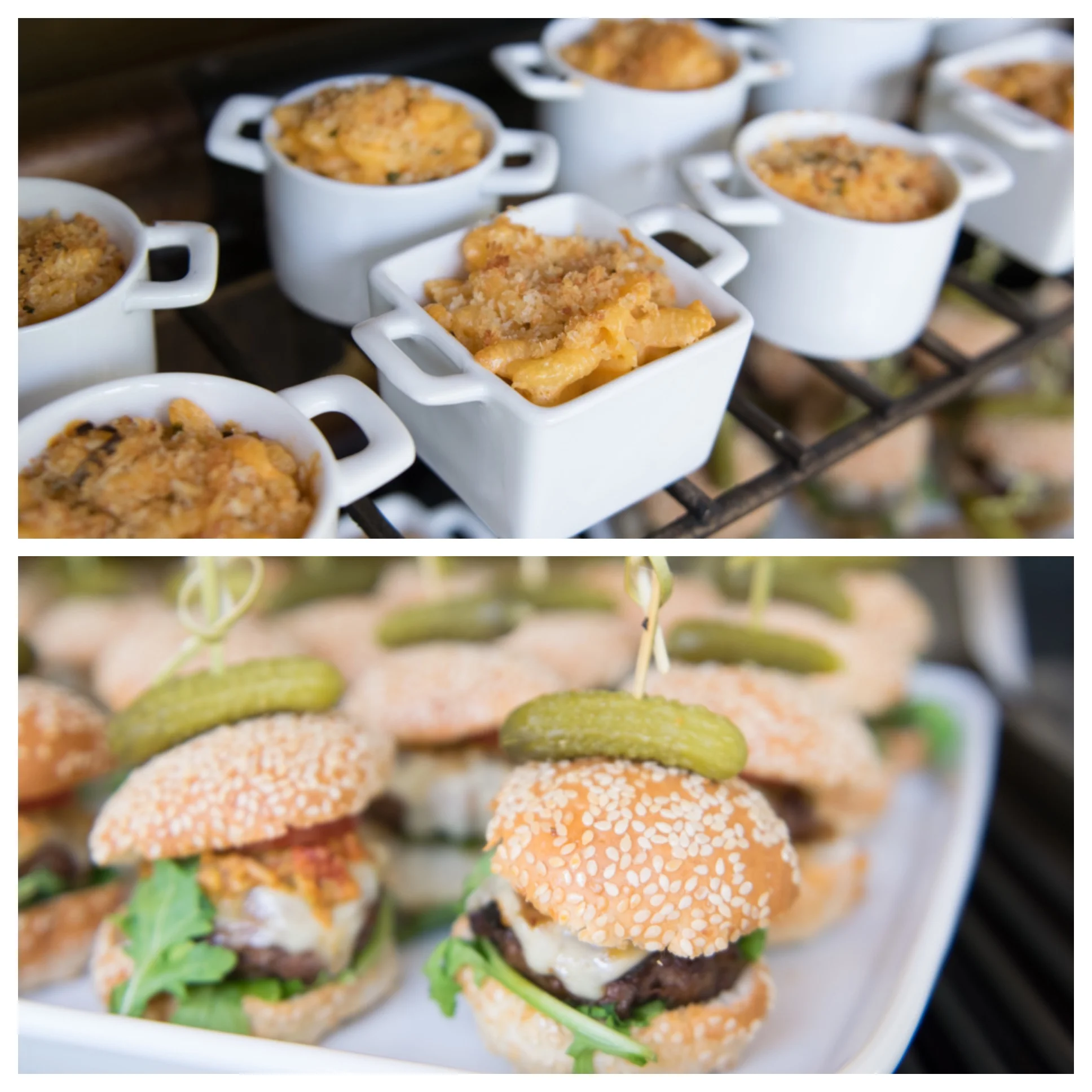 I put together a list of Nazak's favorite foods and POOF like magic, they all appeared! Just kidding. I had loads of help from both Grandmas-to-be, and a professional chef. We had so much good food. Some of Nazak's favs are mac-n-cheese and mini burgers and Stephanie (our fabulous chef) made it all happen. I mean, come on...look at how cute those mini burgers look?! And they were yummylicous too!